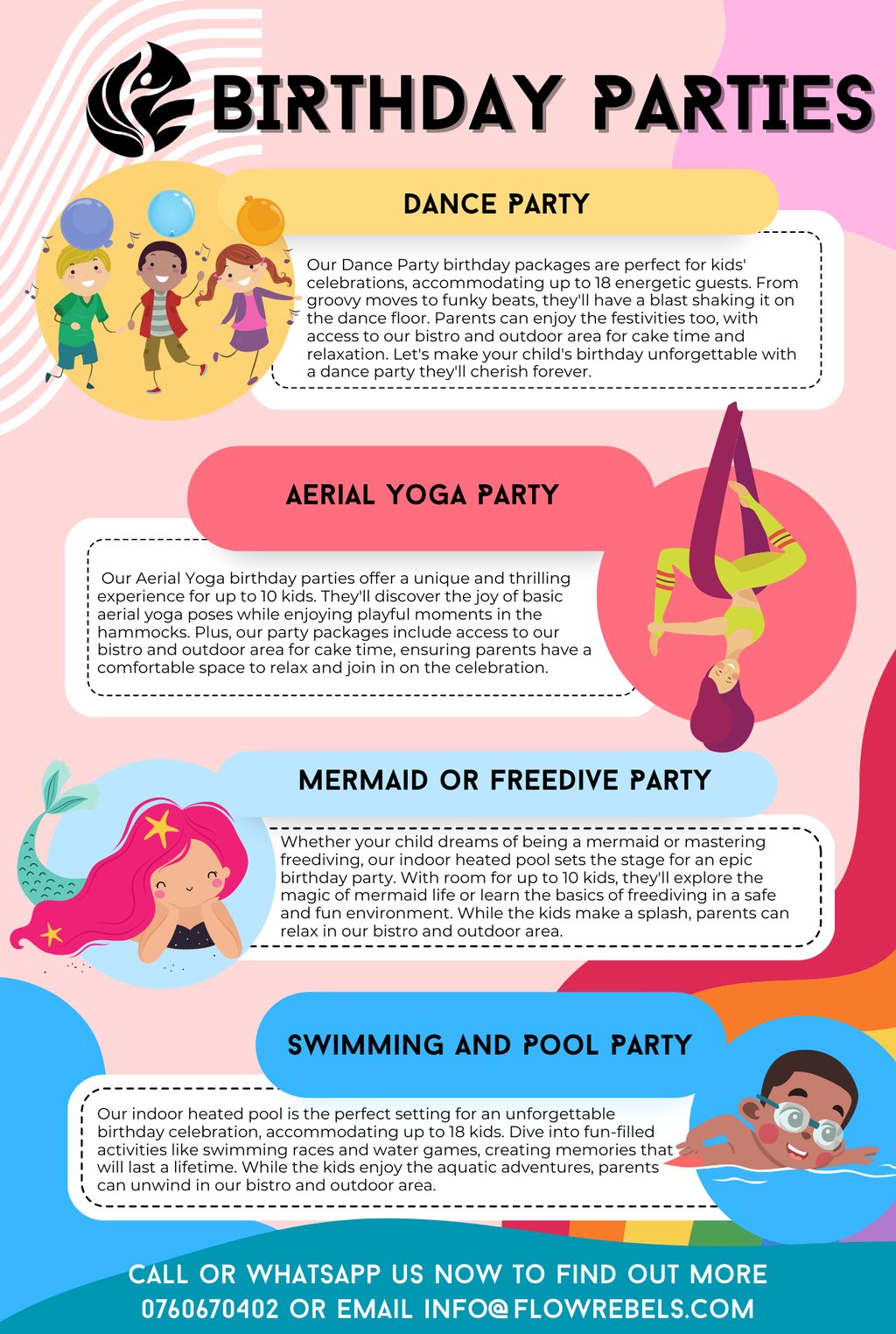 Our mission is to create a healthy and positive atmosphere wherein various people, no matter your age, gender or where you come from. Everyone can progress together towards a healthier body, mind and soul. We rebel against the norms, promoting plant based diets and alternative forms of movement classes in order to gain fitness and health. Each person is on their own journey, from kids to adults, whether your learning to swim or trying to gain fitness. Our passionate instructors will strive to assist you on the road to a better you. How you feel is our primary focus.
