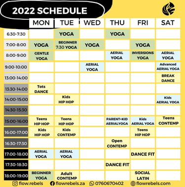 FlowRebels welcomes everyone to our yoga, aerial yoga and dance classes. We train beginners all the way to professional and teacher levels. FlowRebels studio not only offers activities to have fun and get fit, we also provide information on how to live more sustainably since we believe that having a positive effect on our environment directly affects how we feel on the inside.